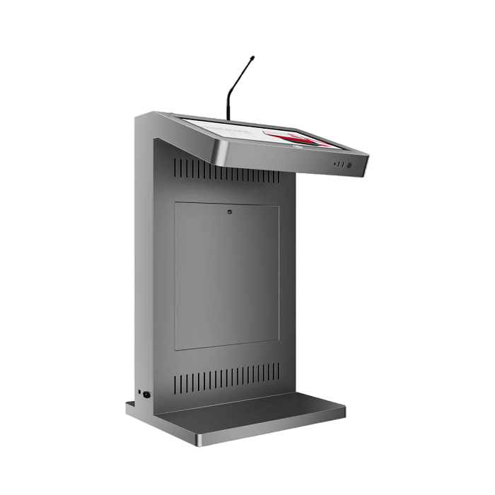 Мультимедийное решение, которое позволяет не только ярко выступить на большую аудиторию, с отображением презентационного материала, но и эффектно продемонстрировать рекламную информацию о компании, предлагаемых товарах / услугах, спикере, на большом внешнем дисплее трибуны. Модель Double 27" оснащена мощным микрофоном, сенсорным дисплеем для спикера, а также большим внешним дисплеем для рекламного контента и набором разъемов для подключения дополнительной техники. Такая трибуна станет прекрасным помощником на конференциях, выставках, спортивных мероприятиях или других мероприятиях, где требуется визуальная поддержка презентаций и общение с аудиторией.
