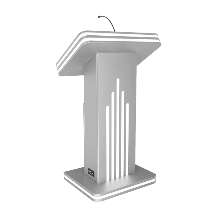 Интерактивная трибуна Light 27" — стильная модель, которая украсит любой бизнес-форум и конференцию. Встроенные микрофоны передают звук на большую аудиторию, удобный интерактивный дисплей с мультитач-системой позволяет отображать необходимую информацию не только для спикера, но и для зрителей, передавая ее на большой экран. Помимо этого, в трибуне есть полочка для воды, а также внешние разъемы. Яркий дизайн корпуса со светодиодным узором не сможет оставить никого равнодушным.