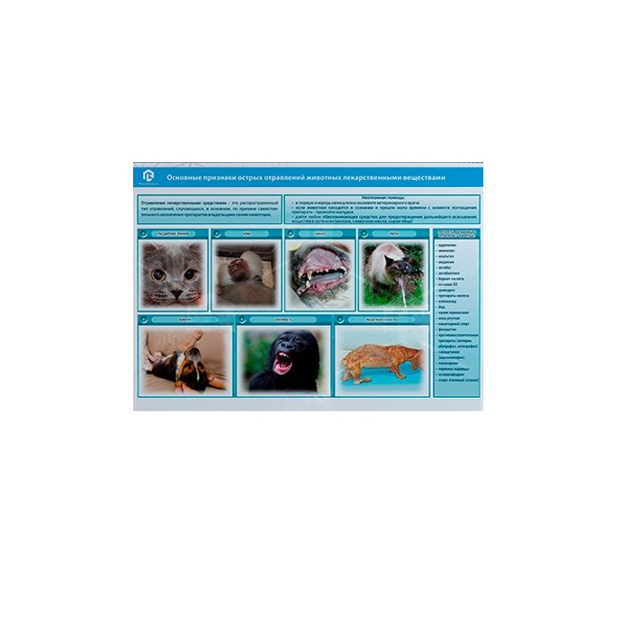 Светодинамический стенд-планшет предназначен для получения знаний об основных признаках острых отравлений животных лекарственными препаратами.