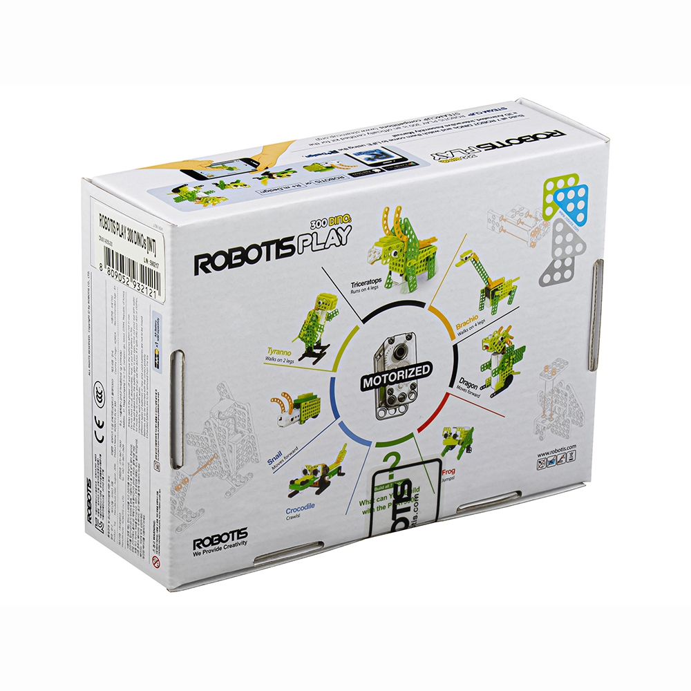 ROBOTIS PLAY 300 DINOs (Динозавры) - робототехнический набор для детей младшего возраста. Позволяет создавать подвижные модели небольших динозавров, приводимых в движение электродвигателем.