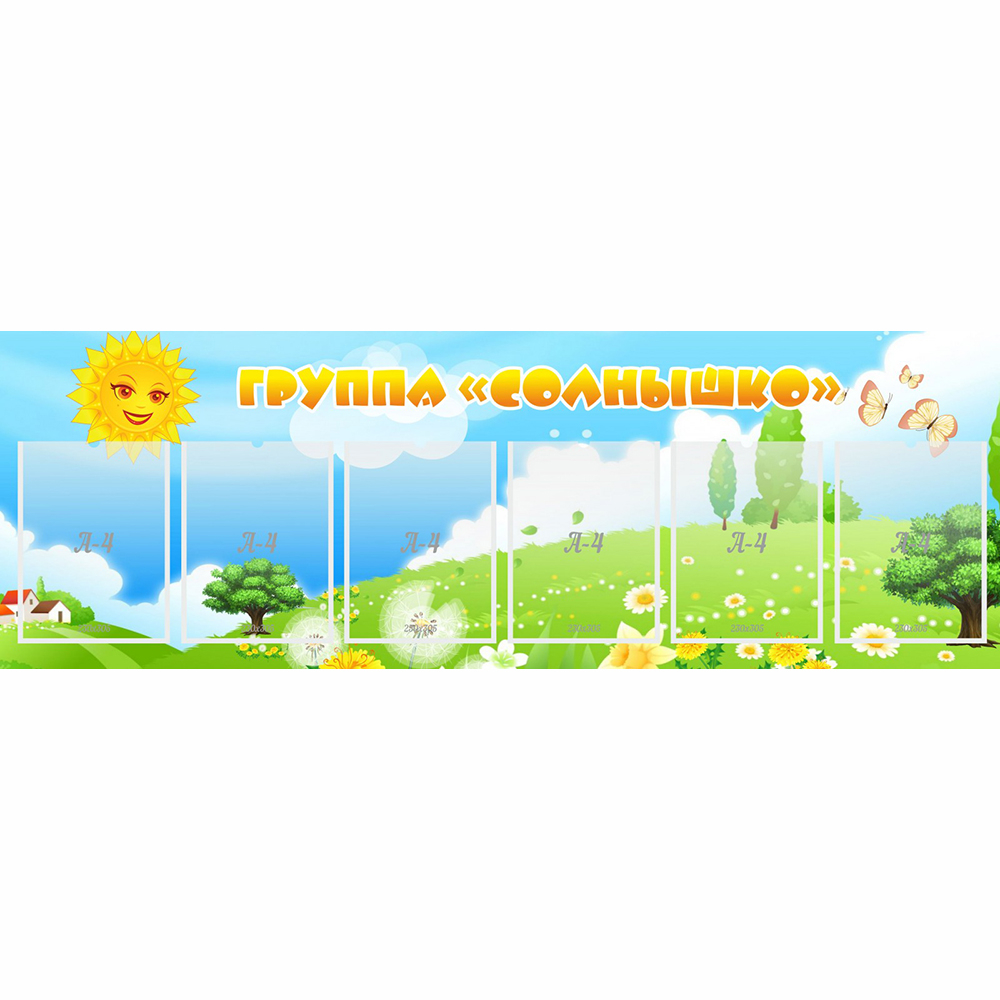 Главная Каталог Подготовительная группа и детский сад Плакаты, таблицы, стенды для детского сада Стенды для детского сада Стенд "Группа Солнышко" с 6 карманами