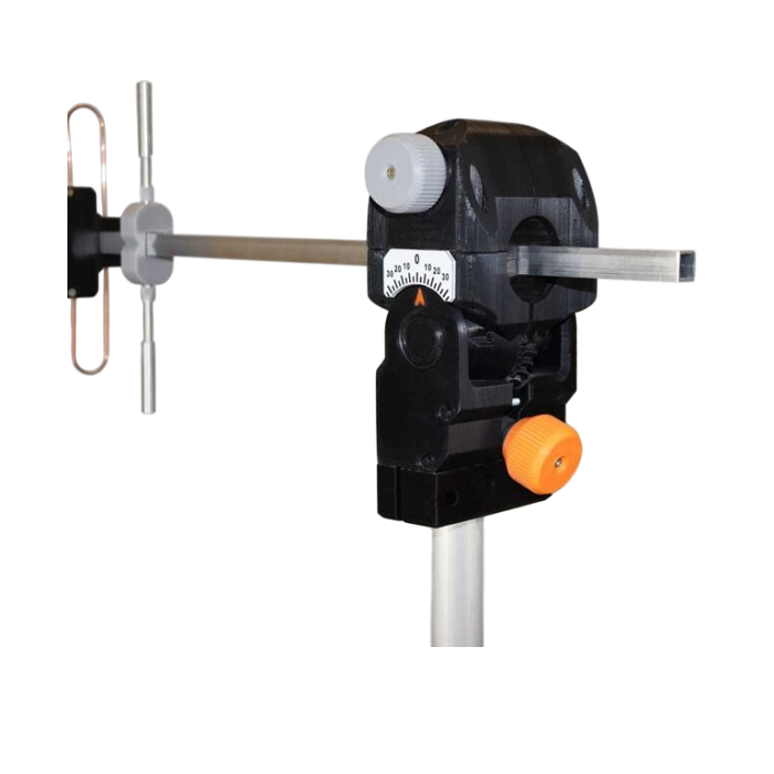 Антенны крепятся на поворотных устройствах с помощью диэлектрических штанг высотой 0.4 м. Фиксация антенн на штангах осуществляется с помощью штатива, в котором предусмотрена возможность их вращения вокруг продольной оси на угол 1000 для обеспечения исследований характеристик направленности в двух взаимноортогональных плоскостях и исследования поляризационных характеристик антенн.