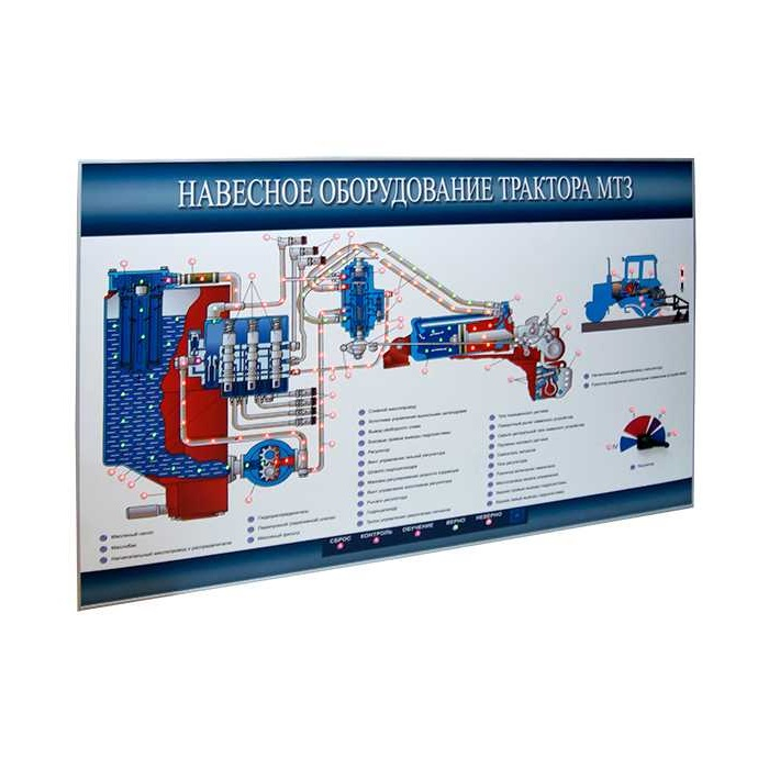 Стенд-планшет электрифицированный светодинамический «Навесное оборудование трактора МТЗ» предназначен для изучения: